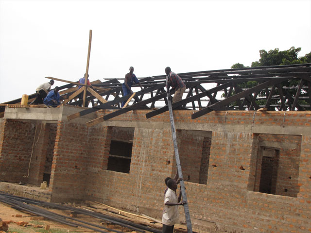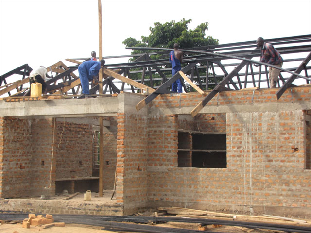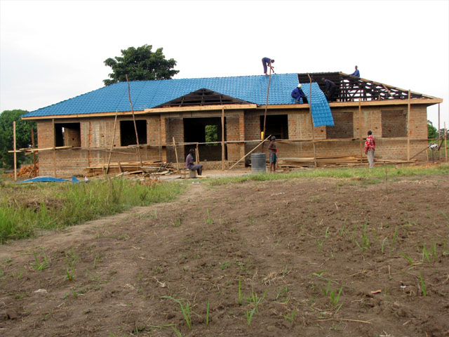The last of the exterior construction is completed with the installation of the roofing panels. The bore well needed to supply water for the facility has been drilled. Interviews for medical staff are now taking place.