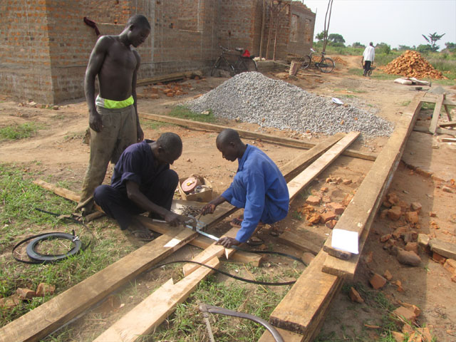 During the dry season, the Papoli community excavated sand from the local river and used it to mold over 30,000 bricks by hand.